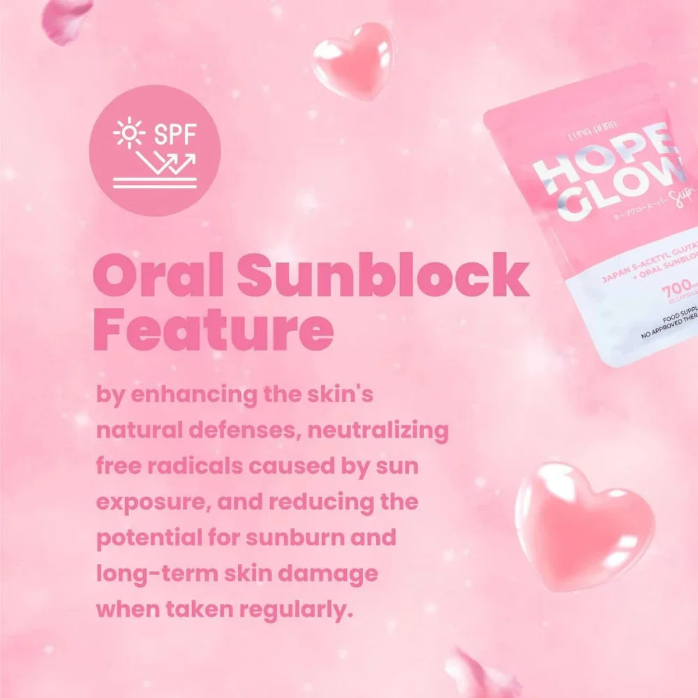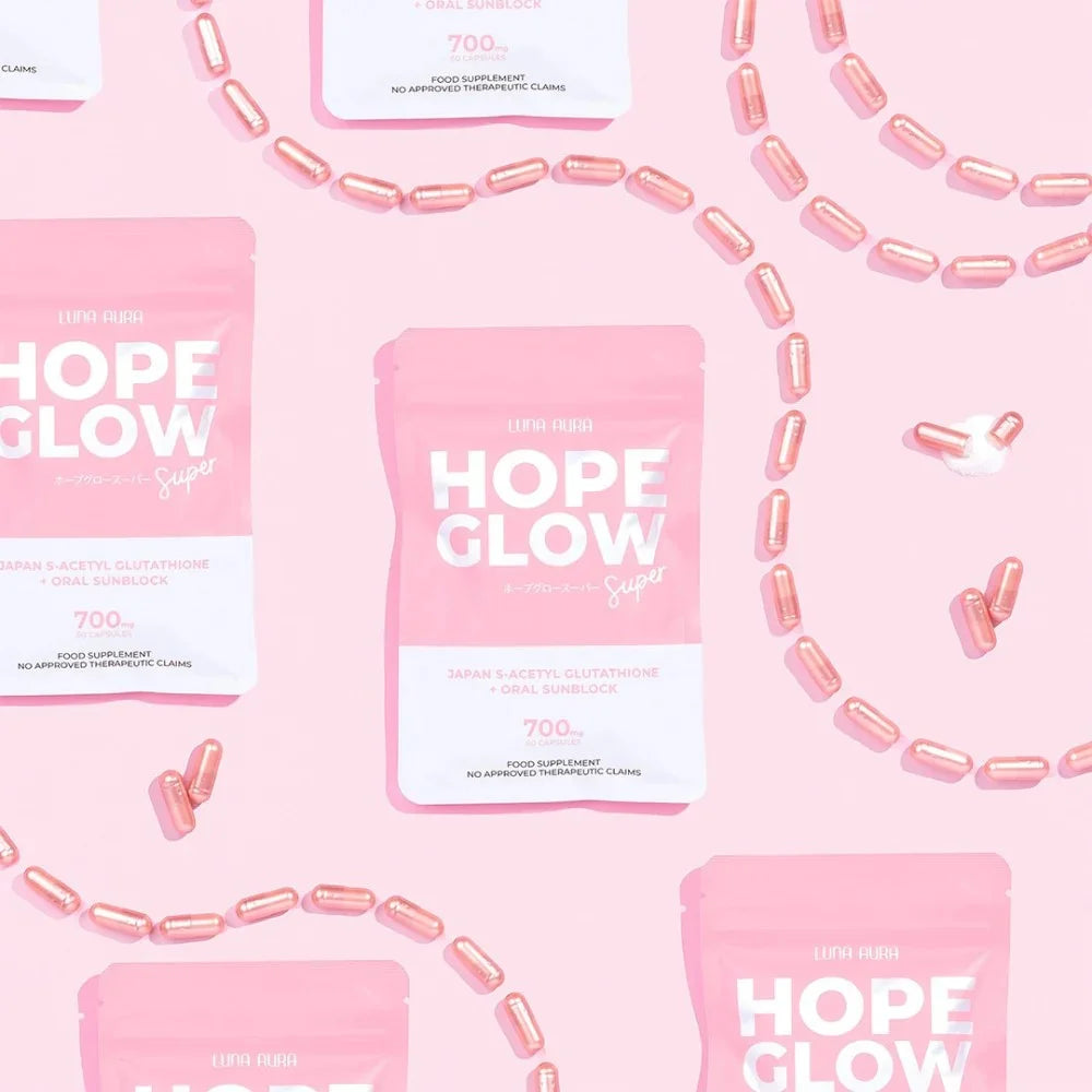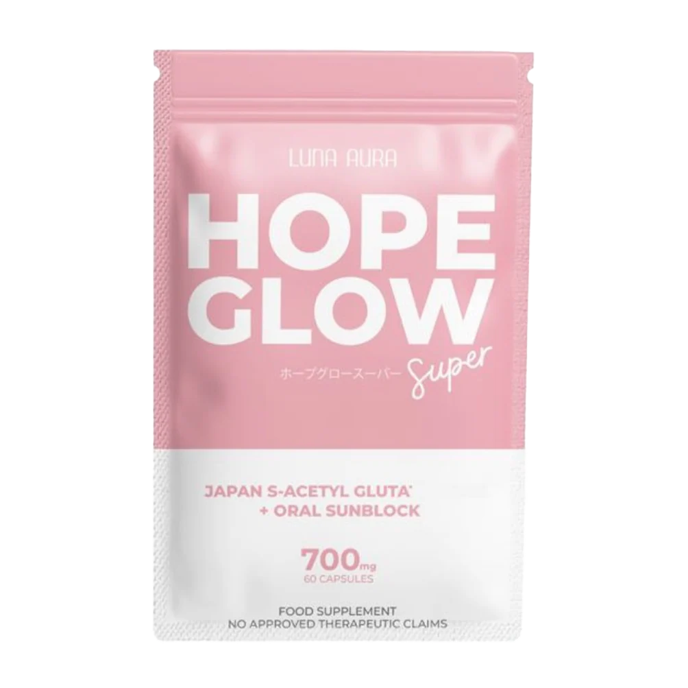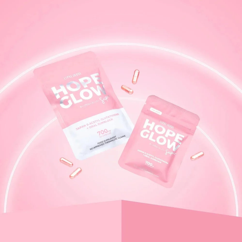 Say hello to your new everyday beauty partner, Hope Glow Super! Formulated with Japan S-Acetyl Glutathione and Oral Sunblock, this is our most advanced and enhanced Glutathione capsule yet.