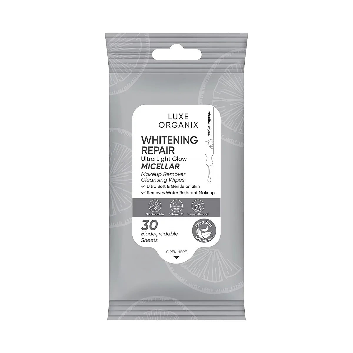 Luxe Organix Whitening Repair Ultra Light Glow Micellar Makeup Remover Cleansing Wipes 30s
