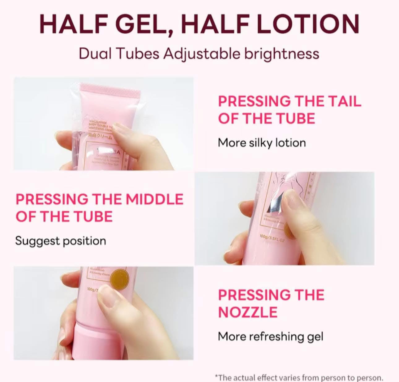 - The product, also referred to as Niacinamide Double Tube Whitening Body Lotion (100 g / 3.5 FL. OZ), employs a Japanese double-tube technology: