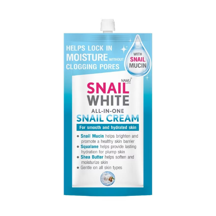 Get the power of skin loving ingredient, Snail Mucin, in this all-in one cream! NAMU LIFE SNAILWHITE ALL-IN-ONE SNAIL CREAM is a lightweight moisturizer that helps promote a healthy skin barrier for smooth and bouncy skin. Squalane helps plump dull and dehydrated skin. Shea Butter helps lock in skin's moisture for long-lasting hydration. Snail Mucin helps nourish skin and fade the appearance of fine lines and dark spots. Nourish your skin with this lightweight moisturizer!