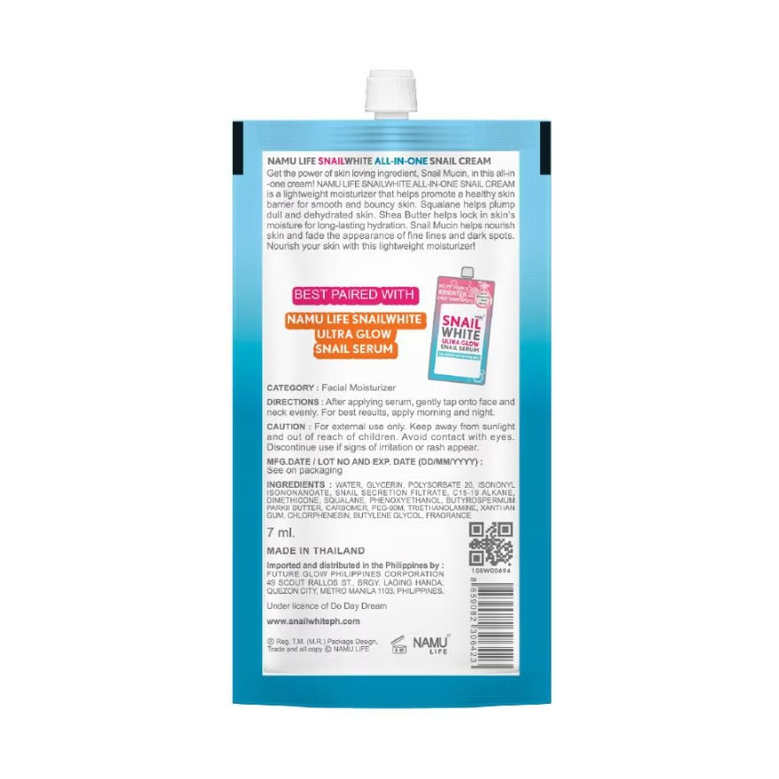 The SNAILWHITE All In One Snail Cream is formulated with a blend of active ingredients designed to hydrate and nourish the skin. Key components include: